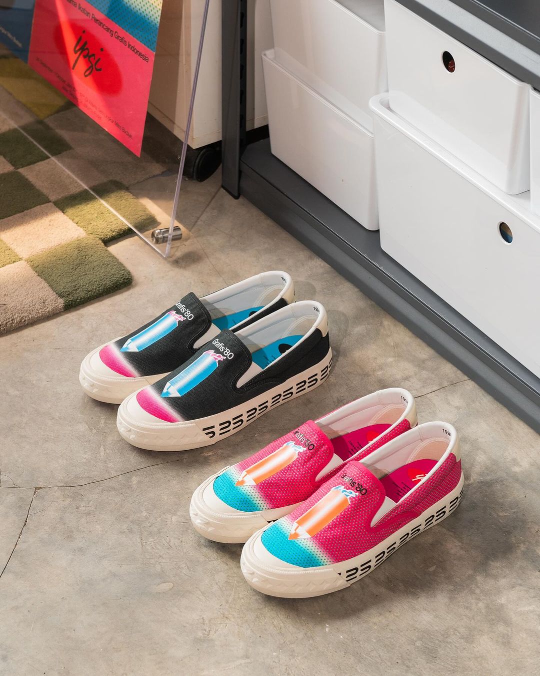 Keunikan dari kolaborasi ini? Mereka bener-bener bangun inklusifitas, lho. Dari 25 desainer yang terlibat, setiap satu desainer punya ciri khasnya sendiri, jadi sepatu-sepatu ini bener-bener punya jiwa yang beda-beda. Mereka tuh ngebuat sepatu lokal makin eye-catching, bener-bener mood booster!
