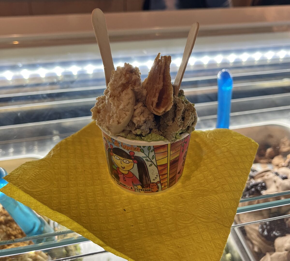 Kedai gelato ini bernama Lemondishcofish yang menyajikan berbagai jenis rasa gelato yang bisa kamu nikmati dengan beberapa topping pilihan. Terdapat rasa buah-buahan dan juga berbagai rasa kue yang super creamy. Selain itu, disini juga terdapat rasa yang unik loh seperti rasa pisang goreng dan teh botol. Sebetulnya kita penasaran sih ingin mencoba, tapi sepertinya kita tetep mencoba yang basic aja yaa Moods hihi.