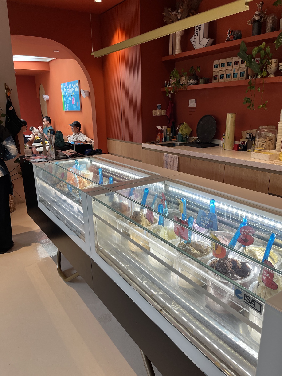 Suasananya bisa dibilang mendukung banget nih untuk kalian menikmati semangkuk Gelato sambil berswafoto bersama teman-teman. Interior yang cukup colorful merepresent nuansa 80an yang kental loh Moods. Selain membuat suasana semakin colorful lewat warna dinding dan pernak pernik, di Lemondishcofish juga menawarkan beberapa produk-produk dari local brand yang pernah berkolaborasi dengannya maupun produk baru yang dijual pada rak-rak yang diletakan di beberapa penjuru ruangan.